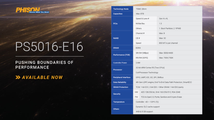 群聯PHISON 全球首款消費應用PCIe Gen4x4 SSD控制晶片PS5016-E16
