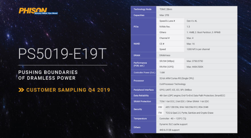 群聯PHISON首款DRAM-Less PCIe Gen4x4 SSD控制晶片PS5019-E19T