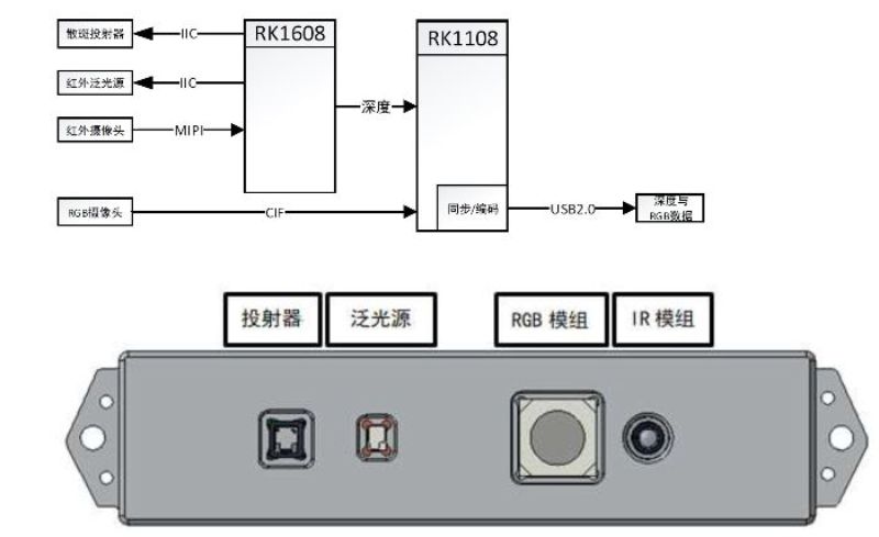 廣泛適用于人臉支付,門禁安防,手勢、肢體識別,高精度3D 建模等產品應用。RK1608 是負責深度計算的DSP 晶片,RK1108 負責RGB 攝像頭處理與輸出同步。光學部分由散斑投射器,紅外泛光燈,RGB 相機和紅外相機組成適應多類工作場景。