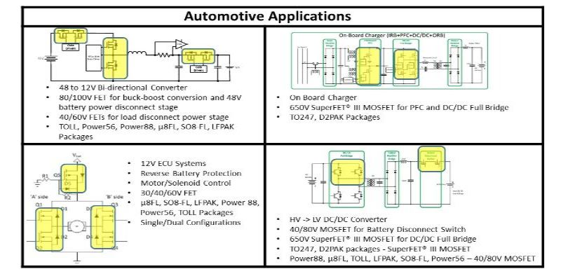 安森美半導體迄今已在汽車MOSFET市場上取得了強大的地位,提供廣泛的符合AECQ-101汽車認證的具有競爭力的MOSFET陣容,為48V輕度混合系統的電源結構、插電式混動/電動(PHEV/ BEV)汽車的車載充電單元、電氣化動力總成中的高壓到低壓DC-DC變換器以及連接電池的12V 電子控制單元(ECU)應用提供了方案,符合汽車系統設計考量。