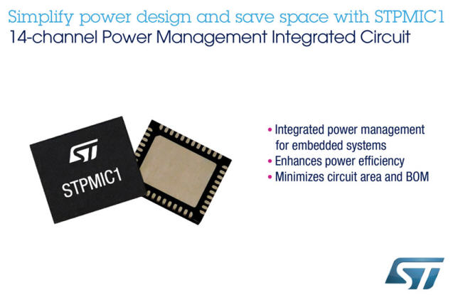 ST推出STPMIC1電源管理晶片(Power-Management IC,PMIC),其整合四個DC/DC降壓轉換器、一個DC/DC升壓轉換器和六個低壓降穩壓器(Low-Dropout Regulator,LDO),可滿足應用處理器之高整合系統的複雜功率需求。