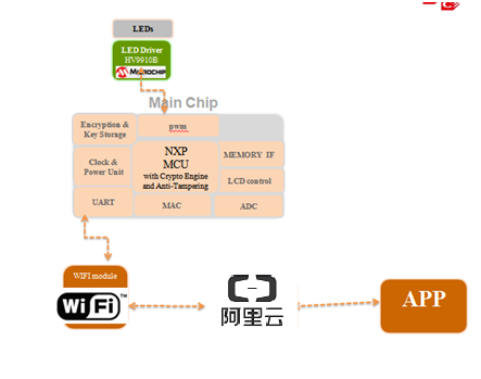 基於阿里雲控制吸頂燈方案是LPC5410+WIFI的智慧家居產品,通過wifi介面,擴展板外接吸頂燈,可用於物聯網。通過socket程式設計雲連接服務配合阿里雲端服務和手機app控制吸頂燈燈,實現手機和雲控制板互動。