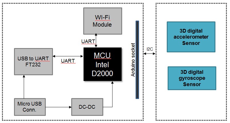 (1) 採用Intel Quark D2000低功耗微控制器 (2)“Arduino Uno” 相容插座,可再擴充更多感測組件 (3) WiFi 模組提供完整的雲端連線上網功能 (4)開發套件提供相關感測器與無線模組的驅動與Exosite雲端上網的API使用參考代碼