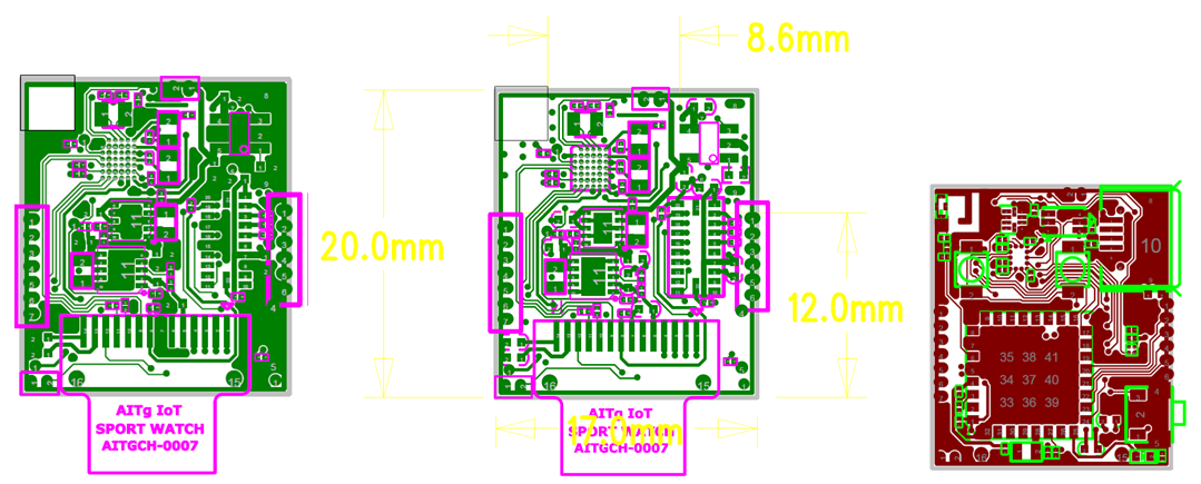 1. 3按鍵設定 2. USB介面充電 3. OLED面板顯示 4. 計步器功能 5. 心跳量測 6. 透過藍牙存取資料