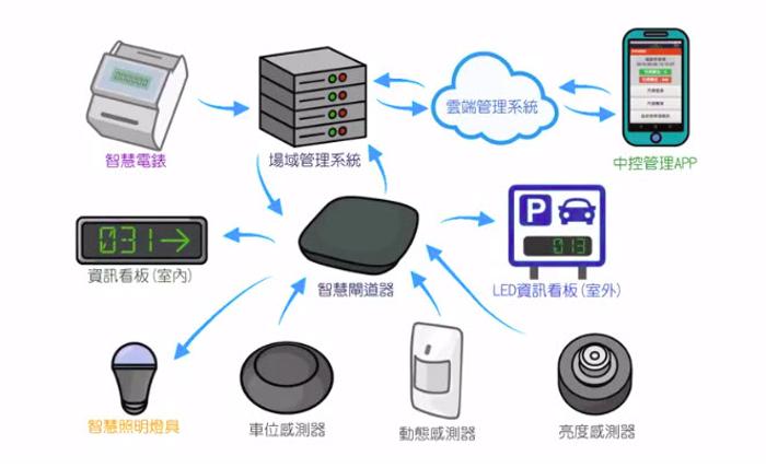 現在開車在台北市街頭,都可以看到在各重要路段上架有大型的LED交通資訊顯示看板,除了一般行車資訊外,還會不時秀出該路段周邊停車場距離,及現有的停車位資訊,方便開車族就近停車。停車場可藉由Gateway 上傳至雲端透過APP提供駕駛資訊。