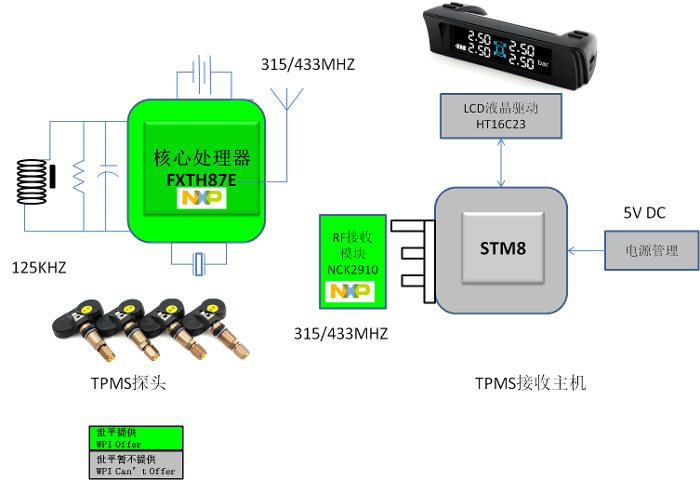 胎壓監測系統簡稱“TPMS”,是“tire pressure monitoring system”的縮寫。這種技術可以通過記錄輪胎轉速或安裝在輪胎中的電子感測器,對輪胎的各種狀況進行即時自動監測,能夠為行駛提供有效的安全保障。胎壓監測系統(TPMS)已成為了提升汽車安全性的新標準。恩智浦TPMS解決方案可提供即時胎壓監測,並在輪胎充氣不當時提醒駕駛員。這款TPMS解決方案可直接、即時地測量每個輪胎的氣壓,並將這些資訊傳輸到車內顯示主機上以便即時通知駕駛員。