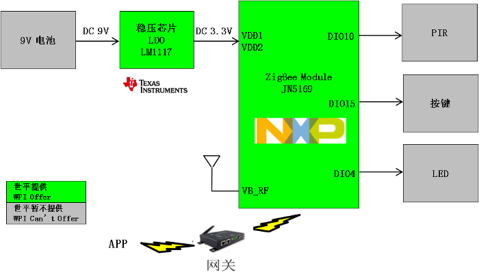 人體感應類開關常應用於樓梯,走道,洗手間,電梯等許多一般公共生活場所。當人體進入到開關感應範圍時,開關微電腦系統能夠感應到人體移動的紅外熱釋變化而做出相應的報警或者開關動作。世平集團推出基於 NXP JN5169 ZigBee 人體紅外感應方案,在普通的紅外報警器方案基礎上,加入支持 ZigBee 的 JN5169,可以實現 ZigBee 組網功能,將監測到的資訊通過 ZigBee 閘道傳入手機,作為提醒。