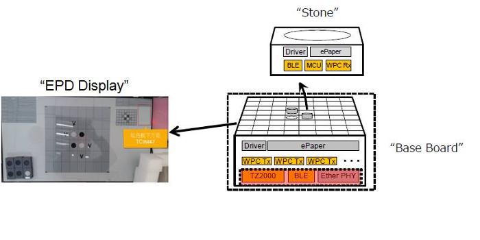 Stone部分藉由BLE低功耗及電子紙省電特色與東芝BLE Scatternet piconet protocal加上無線充電, 在下棋時可以邊玩邊充電,Stone詳細架構如下: