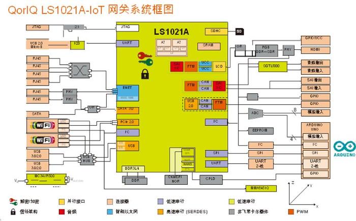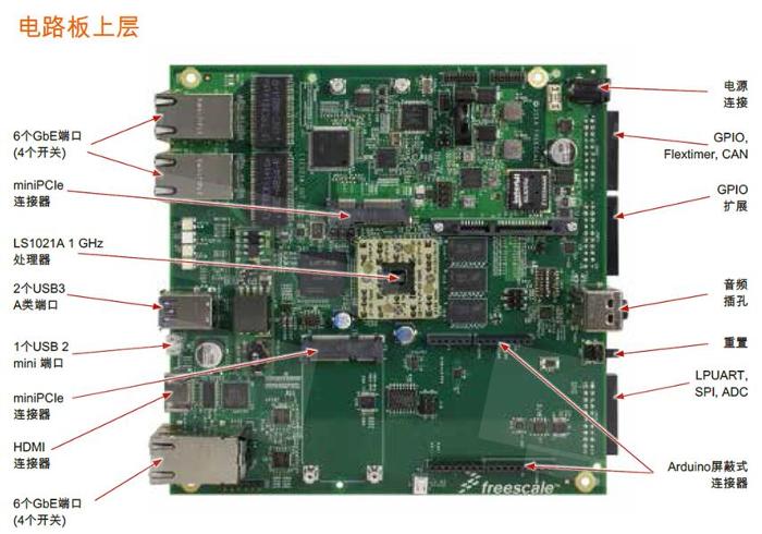 LS1021A-IO- TA)的物聯網(IoT)閘道參考設計: 是基於QorIQ LS1021A處理器的一個小規格的專用硬體平臺,配備了多種高速連接和低速序列介面,旨在支持為在家庭、企業或其他商業地點的終端使用者安全, 交付物聯網服務。這款經濟實惠的參考設 計結合了基於標準的開源軟體和功能豐富的物聯網閘道設計,以便建立一個通用的開放框架,保護物聯網服務的交付和管理。