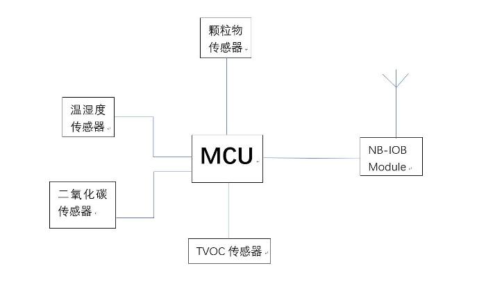 本方案搭載一顆Cortex-M0+超低功耗MCU,溫濕度感測器,二氧化碳,一氧化碳,甲醛等可揮發氣體感測器,Nob IOT模組.MCU 通過I2C ,SPI,UART連接Sensor,通過NB-IOT即時上傳到雲端,供使用者通過手機等終端即時查看,並及時推送危險資訊,典型的應用包括家用安防報警器,車內、室內甲醛,可燃氣體,溫度,火災,室內室外PM2.5顆粒物等環境監測。