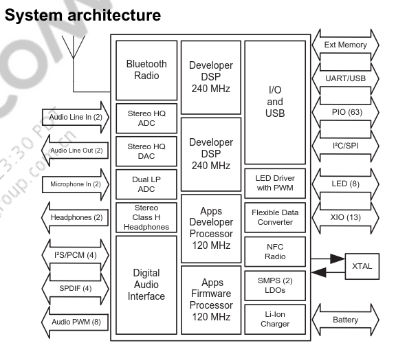 該高度集成的平臺還支援綜合選擇的連接、系統處理、音訊處理和功率管理資源。該平臺包括下一代音訊開發套件(ADK)ADK6.0,可向開發者提供一套由藍牙技術聯盟(Bluetooth SIG)認證的應用和設定檔,以及一個多處理器軟體發展環境、工具鏈和音訊DSP框架。該全新工具包將簡化並增強開發體驗,加速可使多個功能同時運行的用例設計,通過功能間的簡單切換,創造豐富的終端使用者體驗。