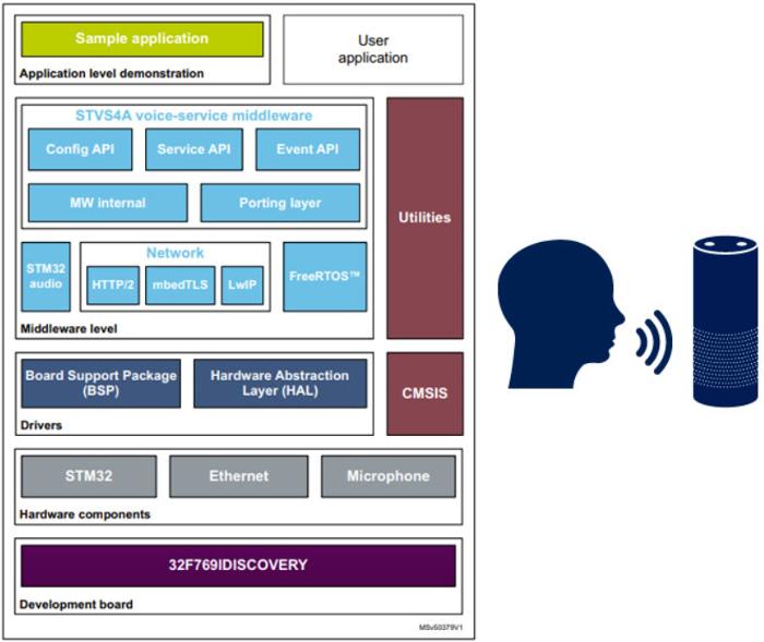 X-CUBE-AVS包含了可以直接使用的固件庫和開放常式,方便快速移植AVS-SDK到微控制器上。同時,該套裝軟體還集成應用代碼示例,開發者無需再對嵌入式設備運行AVS所需的複雜軟體層進行開發。AVS開發工具通常是為能耗和價格較高的微處理器設計,而X-CUBE-AVS是同類首個微控制器專用套裝軟體,讓更多的開發人員和專案可以使用Alexa技術。