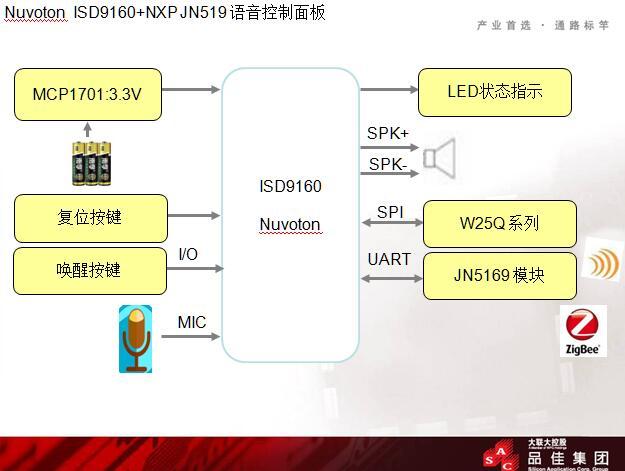 品佳集團一直致力於物聯網產品方案其中包括智慧家居行業方案的推廣。本方案通過本地多達20條語音指令識別,從而實現對節點設備的控制。在語音辨識部分採用Nuvoton 32位元Cortex-M0內核的ISD9160語音控制晶片,該晶片內部集成24bit Audio Codec。在資料傳輸方面採用NXP 32位元高性能低功耗ZigBee SoC晶片 JN5169。本方案開發簡單,只需要通過C語言程式設計和上位機語音訓練就可以實現語音辨識同時該方案也已經在多家智慧家居公司形成產品化。