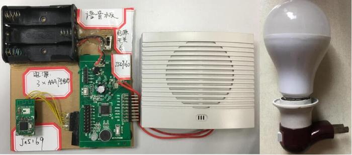 1:語音辨識晶片ISD9160內部集成Cortex-M0內核,並且flash支持145KB,SRAM 12KB。支援5V寬壓輸入。音訊PWM喇叭驅動器(+5V支援1W喇叭)。深度掉電<1uA。Sigma-Delta ADC含PGA,以及適用於麥克風介面的增益加強階段,92dB訊號雜訊比(SNR)。另外晶片也支援SPI,UART,PWM等外設資源。 2:ZigBee晶片JN5169是超低功耗32位RISC高性能無線微控制器,flash支援512kB,SRAM是32 kB RAM,內部集成4kB EEPROM,晶片集成了2.4GHz IEEE802.15.4相容型收發器,另外晶片也支援I2C、SPI、6-ch ADC,功耗參數在RX工作電流是13 mA Rx,0.7 μA睡眠計時器模式、50nA深度睡眠模式。 3:ISD9160通過MIC採集語音資料並做指令識別動作,同時將識別到的指令通過ZigBee無線傳輸到燈端進行控制。