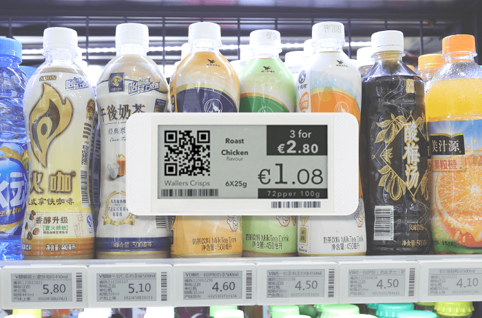 本方案採用NXP JN5169與EPD電子紙顯示幕裝置,每台電子貨架標籤與後臺產品資訊關聯綁定,實現貨架標籤資訊的自動化更新。 1. 使用極低功耗的ZigBee低功耗解決方案,擁有後臺自動省電模式,電池可使用3年以上 2. 自訂內容顯示,如促銷標誌,多貨幣單位顯示,多語言顯示,庫存量