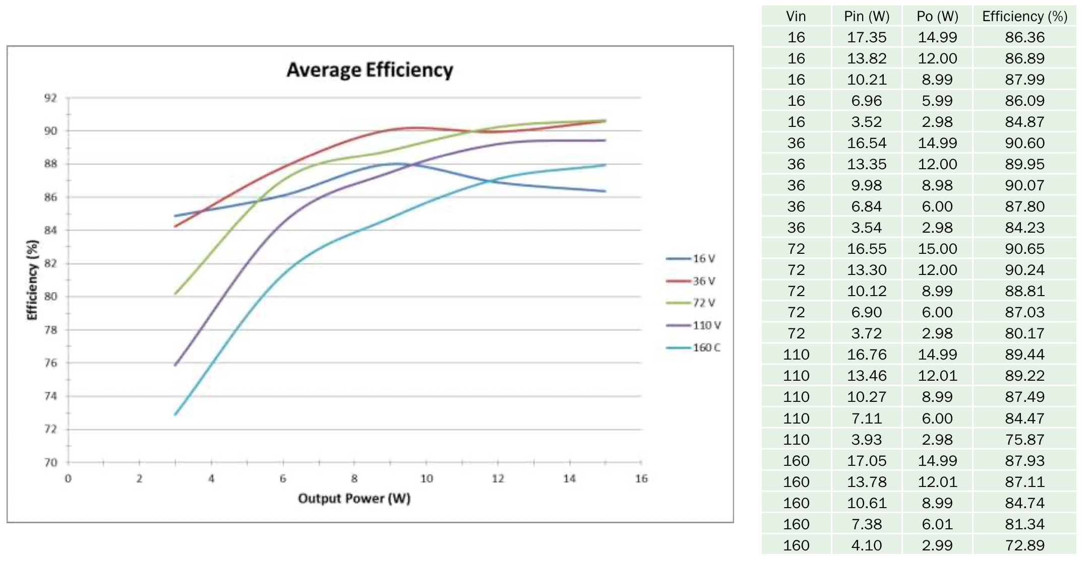 輸入電壓 16--160VDC ,10:1 寬壓輸入 輸出電壓 12V 輸出電流 1.3A 輸出功率 15W 系統滿載效率 大於86% 尺寸 2〞x 1〞國際標準尺寸 認證 醫療認證IEC60601-1 (2×MOPP) 漏電流 超低病患泄漏電流 < 5μA 絕緣電壓 4KVAC輸入/輸出隔離 工作溫度 -40 ~ +90℃ 超寬溫 保護功能 短路、過負載、輸入過低保護 質保 3年保固