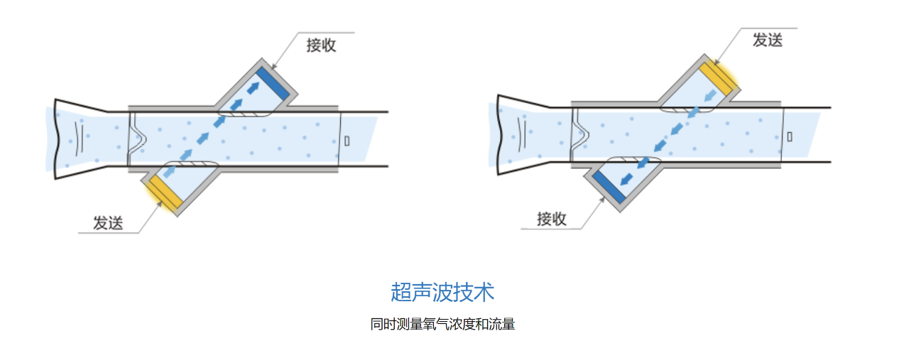 超聲波時差法是利用一對超聲波換能器相向交替(或同時)收發超聲波,通過觀測超聲波在介質(氣體或液體)中的順流和逆流的傳播時間差來間接測量流體的流速,再通過流速來計算流量的一種間接測量方法。超聲波原理的流量測量僅取決於流量和幾何形狀,不依賴於溫度,氣體成分,濕度或壓力。