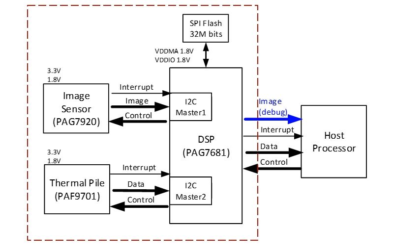 1.智能人臉識別,可以識別是否戴口罩或面具 2.SoC 集成了 PixArt 的專有算法,以超低功耗設計提供人臉和運動檢測 3.支持根據客戶的目標應用進行定製以補償溫度變化 4. 高度集成的SoC,PixArt的FIR產品將檢測到的物體的校準溫度參數值寫入其內存中,可直接讀取並轉換為特定應用的溫度,從而減輕客戶系統負擔節省功耗。
