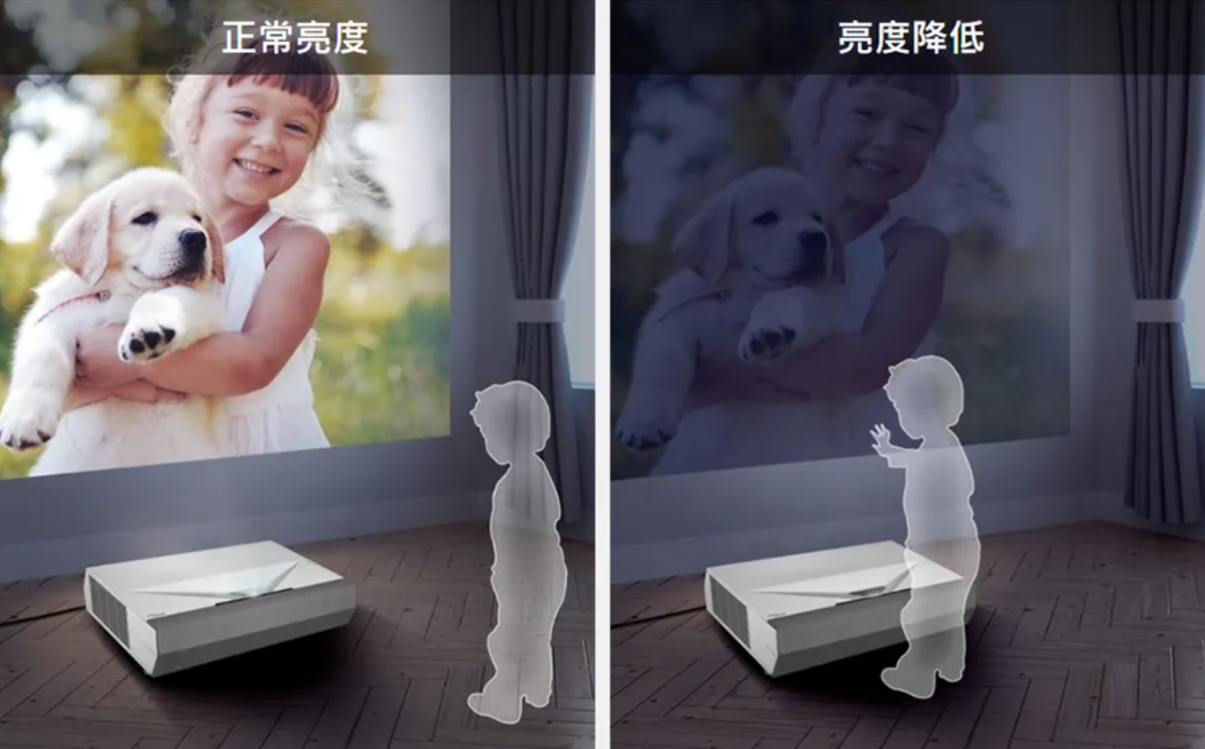 而在投影機的市場中,因為投影機的光源會發射超出2000流明以上的強光,可以透過ST 紅外線傳感器搭配投影機來設定安全區範圍來感測是否有人或物的靠近,這可以讓人靠近安全區範圍,就會主動降低投影機光源,避免造成投影機的光源照射到人眼。