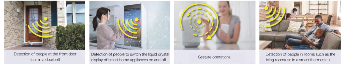 毫米波科技股份有限公司採用Socionext SC1233 毫米波晶片並搭配Artery Cortex-M4 F403A系列之微控制器,設計了一塊PCB體積較小的雷達模組,可以讓終端客戶搭配其產品機殼,進行快速功能展示。其偵測模式包含如下: