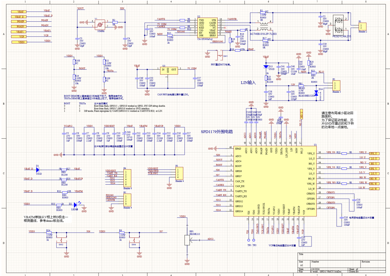 ·主電源經過內部集成的5V和3.3VLDO為SPD1179晶片供電,無需再額外引入3.3V