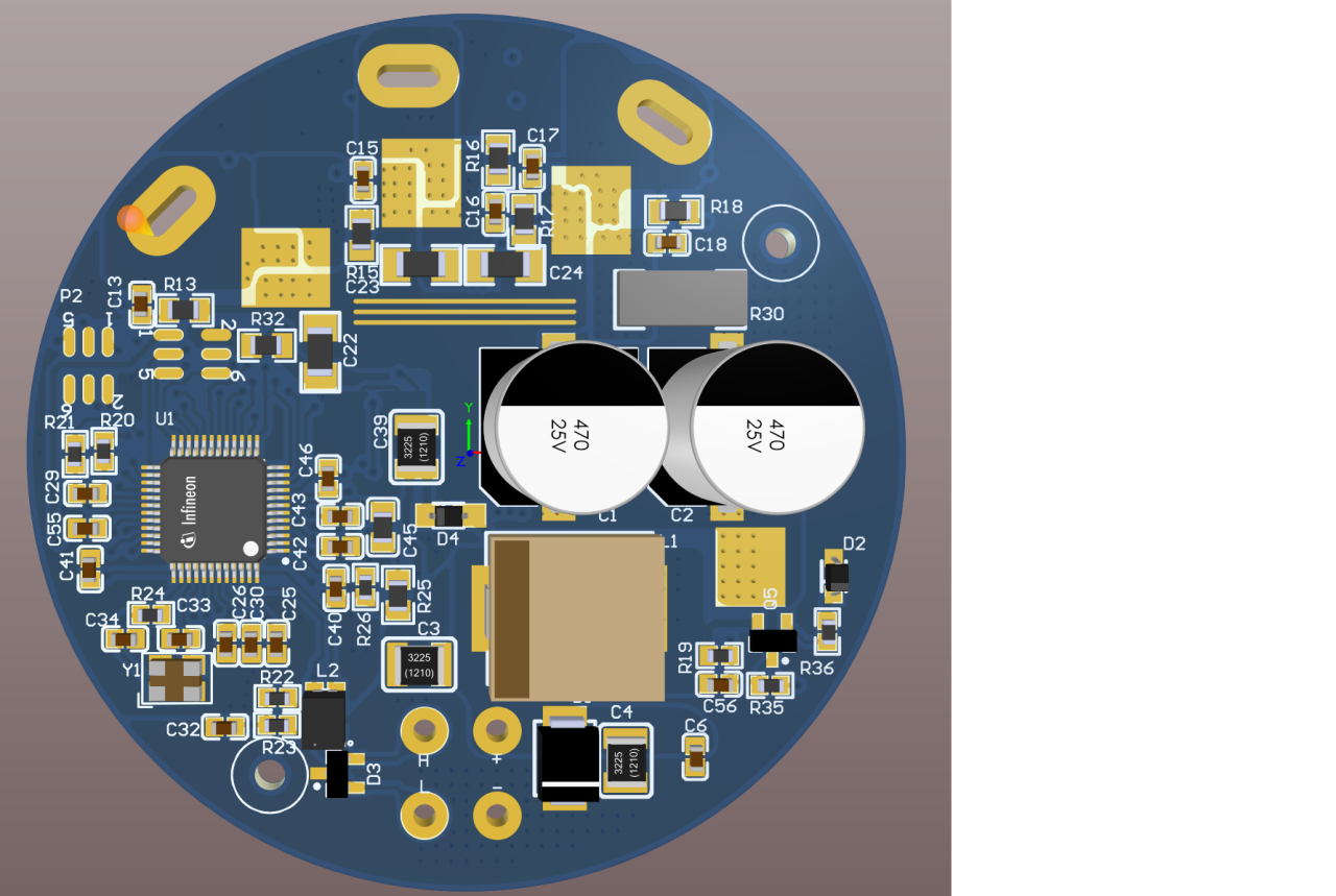 1.5.5V~40V 寬電壓工作範圍,帶有有防反電路,EMC濾波電路。 2.TMR 傳感器TLE5501,兩對差分輸出角度正餘弦電壓。 3.單電阻採樣,有感FOC。 3.最大輸出功率 150W。 4.過壓、欠壓、短路、開路、過流、過溫保護。 5.可以選擇CAN 通信控制電機,可以睡眠,可喚醒。