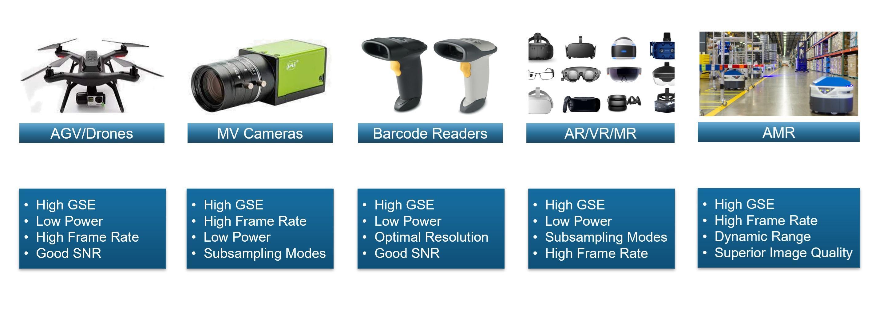 1. 卓越的低光與紅外線性能 2. 自動黑電平校準 (ABLC) 3. 5 x 5 統計引擎可用於晶片內自動曝光控制,適用於任何可編程的感興趣區域(ROI) 4. 支援多顆應用同步觸發模式 5. 內建閃光燈控制 6. 業界最高的全域快門效率 7. 優異的功耗:1920x1200 x 120 fps 240 mW