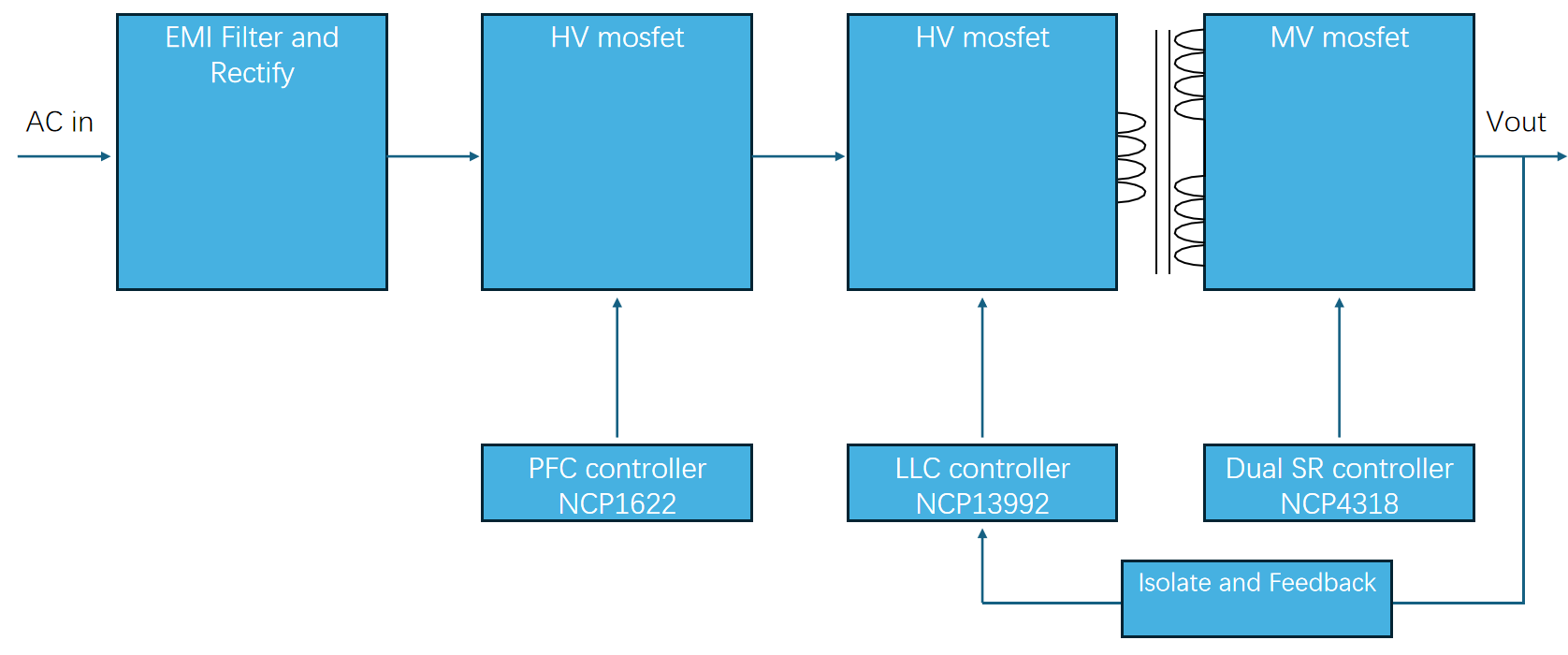 本文以NCP1622作為PFC控制部分,結合電流模式諧振控制晶片NCP13992製作雙級高性能開關電源,並對其進行基本功能測試驗證,電源性能表現結果詳見測試報告。