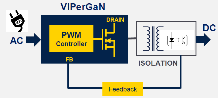 VIPERGAN65D - 先進的準諧振離線高壓轉換器,搭載E-mode GaN HEMT - STMicroelectronics