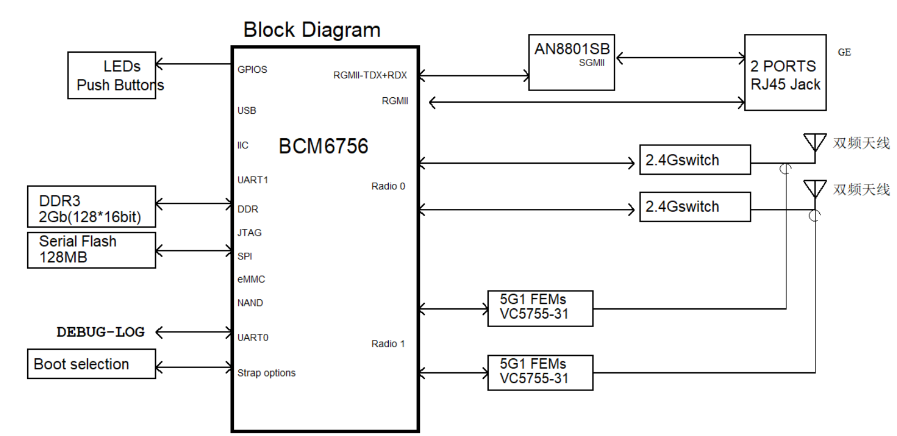 A1:VC5755-31支援IEEE 802.11a/n/ac/ax協議。