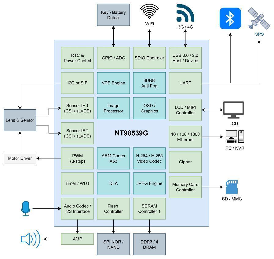 Novatek NT98539G 是一款專為 IP Camera(網路攝影機)應用設計的高整合度系統單晶片(SoC)。它不僅僅是一個影像訊號處理器,更內建了強大的人工智慧運算引擎,可說是整個影像系統的智慧核心,為影像處理和分析提供卓越的效能支援。