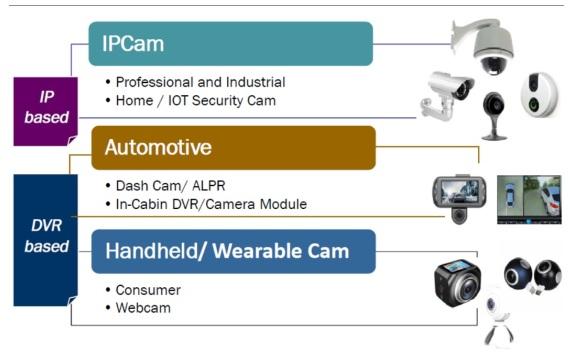 搭配不同平台SOC,可適用於安防監控、車載高清、USB攝影機、打獵相機、紅外夜視儀、運動攝影機和物聯網 AI 相機等領域。