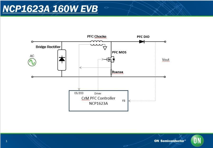 1. NCP1623具有Follower boost功能 2. NCP1623將CS和ZCD結合在同一個接腳 3. NCP1623的ON-time調變器可在頻率折返期間維持適當的電流波形 4. NCP1623在CRM操作模式下提供谷底切換功能 5. NCP1623支援透過MOSFET汲極(Drain)電壓或輔助繞組方式檢測零電流 6. NCP1623提供熱關斷(Thermal Shutdown)、非鎖定過壓保護(Non-latching OVP)、欠壓檢測(Brown-out Detection)以及跳過功能(Skip)
