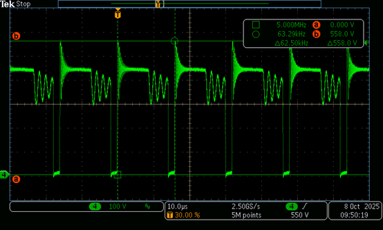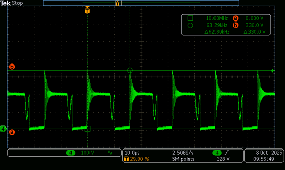 圖十一264Vac滿載時NCP1077電壓應力波形