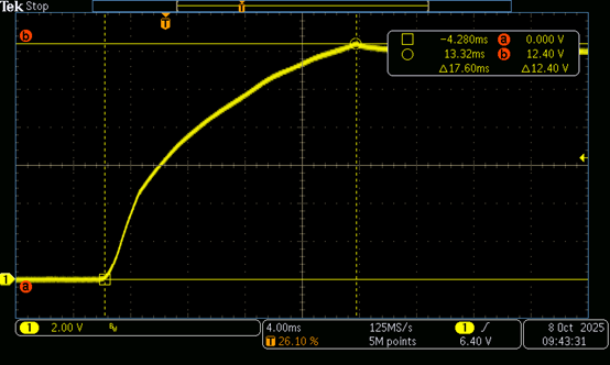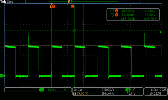 今日主題以安森美NCP1077STAT3G作為12V/12W輔助電源應用,其主要規格如下:輸入電壓範圍為90Vac~264Vac,滿載效率大於75%,輸出電壓變動率需控制在3%以內。其線路圖是按照圖三的典型應用線路設計,變壓器使用EE22鐵心,根據BCM公式可計算出此12V/12W變壓器的一次側感量,這裡我們取1mH的電感量,一、二次側匝數比為6:1,即NP:NS:NVCC為74Ts : 12Ts : 12Ts。該方案選擇100V/3A肖特基二極管作為二次側輸出整流器。12V/12W輔助電源方案是使用手邊易取得的元件組裝而成,PCB採用洞洞板實現,實際組裝完成的成品如圖四所示。12V/12W輔助電源方案滿載效率在90Vac時為77.97%、115Vac時為79.63%、230Vac時為78.84%、264Vac時為77.77%,圖五展示了12V/12W輔助電源方案在不同輸入電壓和負載下的效率表現。12V/12W輔助電源方案的空載功耗分別為90Vac時107mW、115Vac時152mW、230Vac時570mW、264Vac時752mW,圖六展示了該方案在不同輸入電壓下的空載功耗表現。輸出電壓變動率在90Vac時最大為0.33%、115Vac時最大為0.33%、230Vac時最大為0.33%、264Vac時最大為0.33%,圖七展示了該方案在不同輸入電壓和負載下的輸出電壓變動率。12V/12W輔助電源方案在90Vac和264Vac下的輸出電壓上升時間分別為17.6ms和11.4ms,圖八展示了該方案在90Vac時的輸出電壓上升時間,圖九展示了該方案在264Vac時的輸出電壓上升時間。12V/12W輔助電源方案在90Vac和264Vac下NCP1077 VDS的最大電壓應力分別為330V和558V,圖十展示了該方案在90Vac滿載時的VDS電壓波形,圖十一展示了該方案在264Vac滿載時的VDS電壓波形。12V/12W輔助電源方案在90Vac和264Vac下二次側整流肖特基二極管的最大電壓應力分別為43.2V和86.4V,圖十二展示了該方案在90Vac滿載時二次側整流肖特基二極管的電壓波形,圖十三展示了該方案在264Vac滿載時二次側整流肖特基二極管的電壓波形。