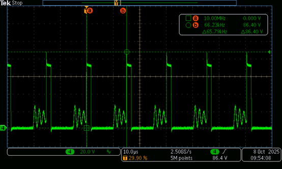 圖十、在90Vac滿載時NCP1077電壓應力波形