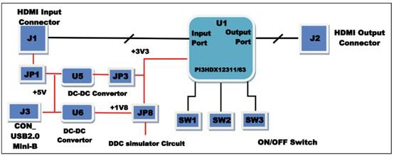 為了降低功耗,PI3HDX12311 會監控連接器中的熱插拔偵測(HPD)針腳,從而控制功耗;當 HPD 處於低位超過 2 毫秒時,元件將進入低功耗狀態。 DDC 監聽器也具有類似功能,可監控 HDMI Forum 廠商特定資料區塊(HF-VSDB)與相同的狀態與控制資料通道結構(SCDCS)偏移暫存器。