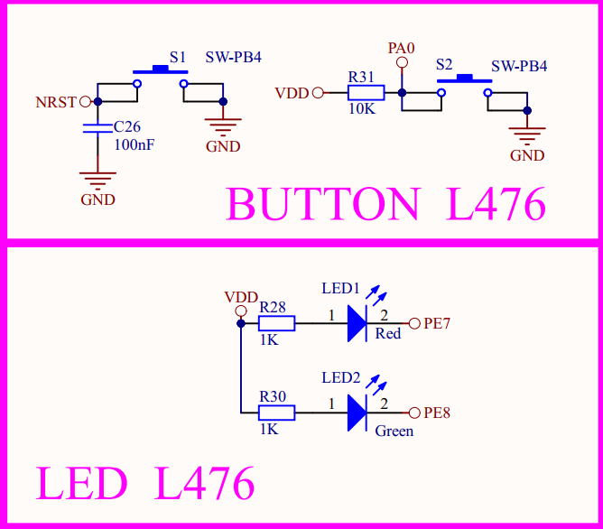 基於STM32L476MGY6微控制器的開發板,主要規格如下: 1. 核心參數 • MCU型號:STM32L476MGY6,採用WLCSP81封裝 • 內核:Arm® Cortex®-M4 32位RISC,帶FPU • 時鐘:8MHz HSE晶體振盪器 2. 板載資源 • LED/按鈕:2個用戶LED(PA5)、1個用戶按鈕和1個重置按鈕 3. 擴展介面 • 擴展引腳接頭(全面訪問STM32 I/O) • 電源選項:ST-LINK、USB VBUS或外部電源 4. 開發支持 • 調試器:集成ST-LINK/V2-1,支持USB重新枚舉(大容量存儲、虛擬COM端口、調試端口) • 軟體支持:兼容IAR™、Keil®和基於GCC的IDE,提供STM32Cube MCU軟體包