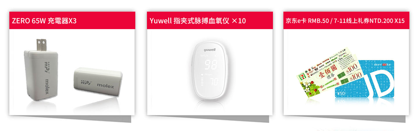 3. 京东e卡 RMB.50(大陆地区)或7-11线上礼券 NTD.200(台湾地区),共 15 份