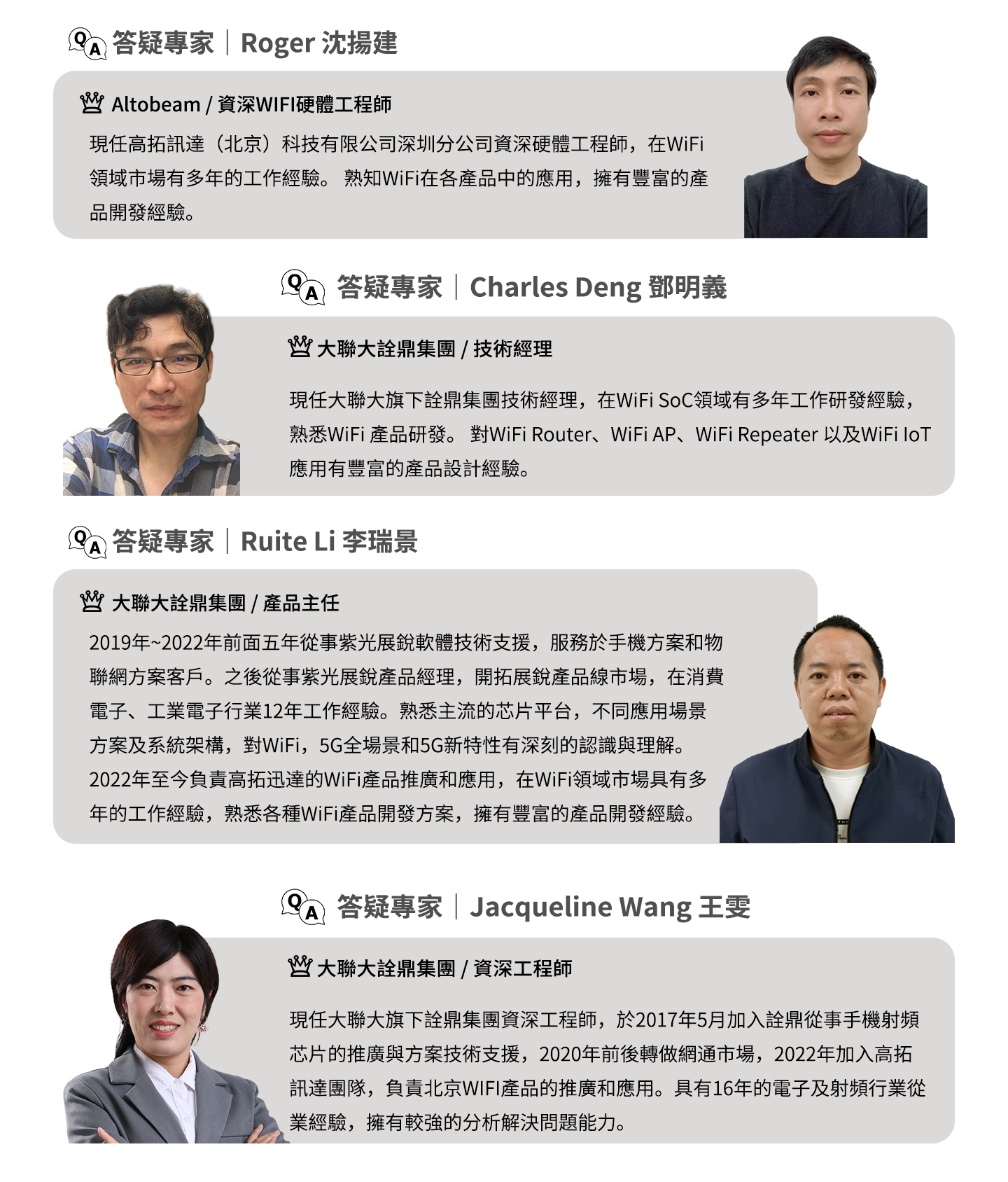 大大通的方案涵蓋車聯網、智能座艙、車身電子、光伏、儲能、智能家居、智慧城市、穿戴裝置、智慧醫療、電源等應用領域;除了大聯大內部的方案,還有原廠的最新方案,以及行業優質合作方案商(IDH)的方案,打通客戶、原廠、IDH 以及大聯大的FAE 之間的壁壘,搭建整個技術的生態圈。除了大聯大七百餘位專業FAE在線上進行高效、專業的技術支持,大大通更希望匯聚所有工程師一起分享和成長。客戶可以更直接快速的了解方案、解答疑問、獲取技術文檔,從而縮短客戶方案量產時間。