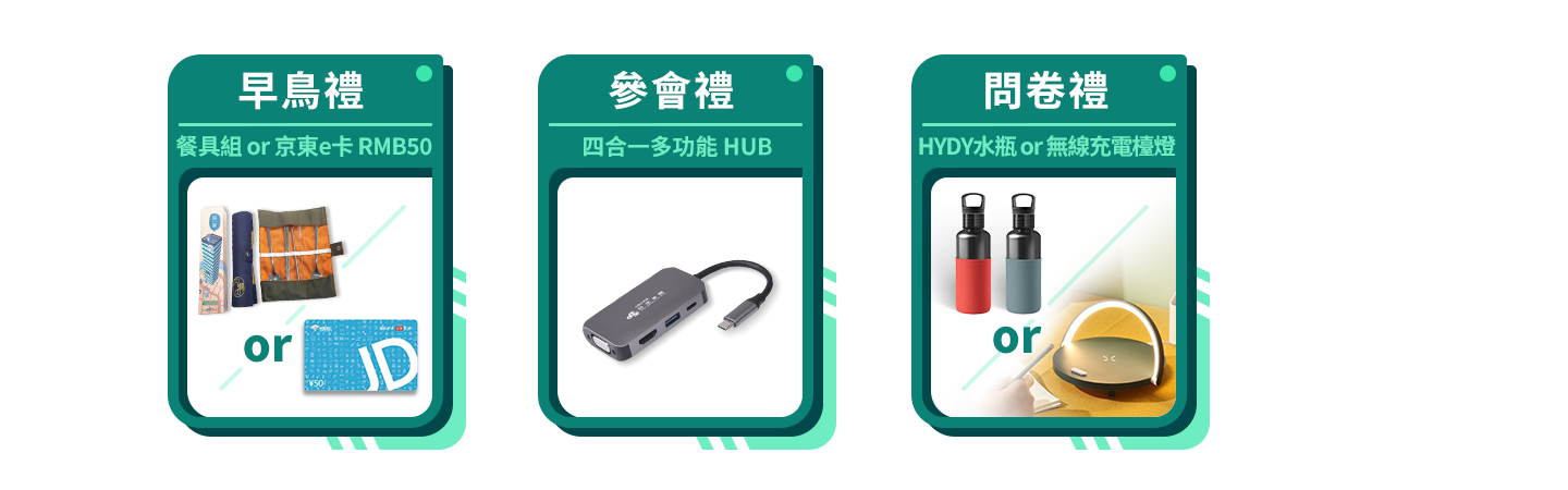 ① 早鳥禮(共 6 份) : 304 不銹鋼環保餐具組 or 京東e卡 RMB.50。