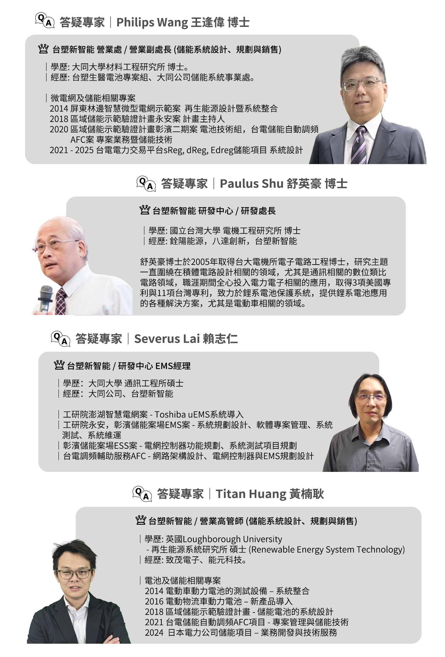 70多年台塑的企業信譽與百分百台灣製造的鋰鐵電池,成為客戶建置錶後儲能首選的合作夥伴,不僅符合國產電池的補助要求,且可靠的品質與全天候的售服,未來20年使客戶安心獲得儲能帶來的能源效益。