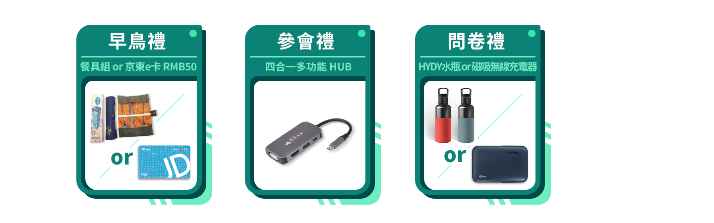 ① 早鳥禮(共 6 份) : 304 不鏽鋼環保餐具組 or 京東e卡 RMB.50。