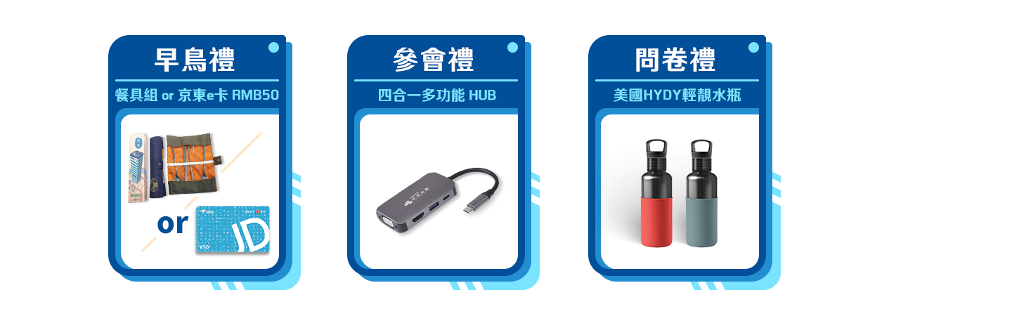 ① 早鳥禮(共 6 份) : 304 不銹鋼環保餐具組 or 京東e卡 RMB.50。