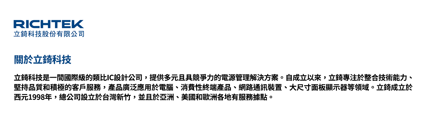 Richtek 憑藉高集成電源設計、超低功耗技術及嚴格的功能安全認證,為智慧座艙(多屏互動、高保真音訊)與 ADAS(高解析度攝像頭、雷達系統)提供穩定高效的動力支援,助力智慧汽車實現更安全、更智慧的演進。